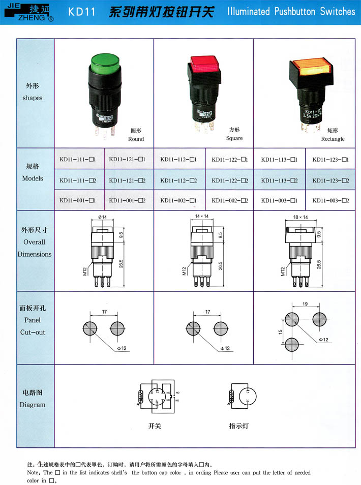 • KD11系列帶燈按鈕開(kāi)關(guān) 產(chǎn)品型號(hào):KD11系列帶燈按鈕開(kāi)關(guān)